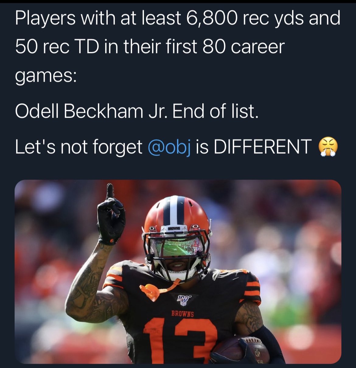 Quotes from the news wire. Im really more focused on the Packers and the Giants so any of those questionswhenever you all want to sit down and have a little side-to-side we could do that after the playoffs. Keenan Allen and Mike Williams are good too. The Cleveland Browns have released wide receiver Odell Beckham Jr. November 5 2021 WFIN. I hope its not the greatest catch of all time. Selected Odell Beckham Jr. Browns quarterback Baker Mayfield expressed his pride in the locker room culture that thrived in the key win. Odell Beckham Jr signs with the LA Rams Posted.