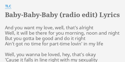 Tlc baby baby baby. But you gotta be good And do it right Aint got no time for part-time lovin in my life Well you wanna be loved uh Hey thats okay Cause it falls in line. Baby-Baby-Baby is a song by the group TLC. Baby-Baby-Baby Lyrics by TLC from the The Very Best of TLC.