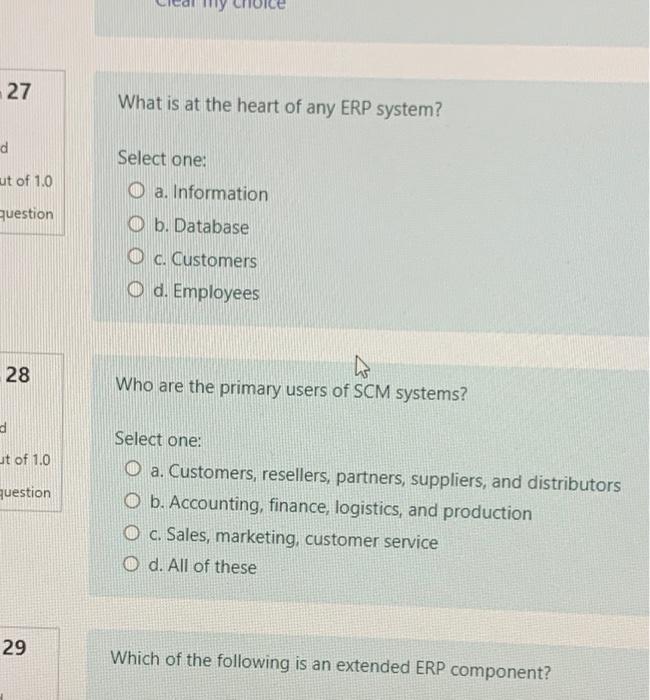 Information Employees Customers Database 2 What must a system do to qualify as a true ERP solution.